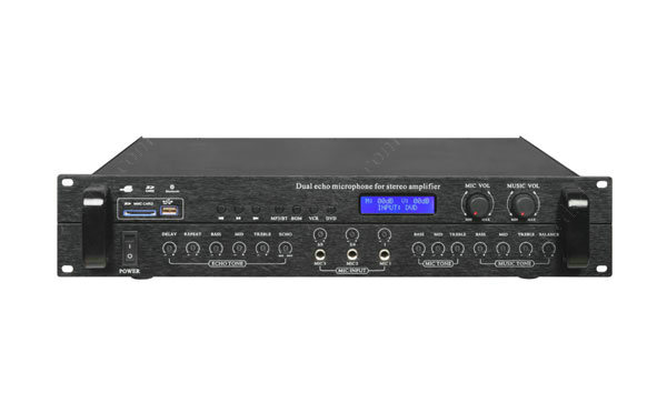 此係列產品是具有音箱處理功能的卡拉OK效果器,每部分功能都獨立可調。  用24Bit數據總線雙混響;  麥克風自帶反饋抑製;  MIC通道四路輸入,一路48V幻象電源支持電容麥輸入;  內置USB/SD接口,遠距離藍牙接收;  本機設有